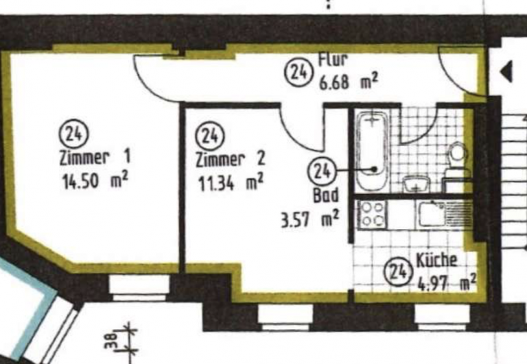 Die vermietete 2-Zimmerwohnung befindet sich im 2.OG des Seitenflügels eines 4-geschossigen, gepflegten Wohnhauses und hat eine Wohnfläche von etwa 41,06 m².