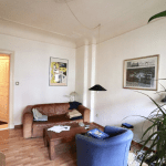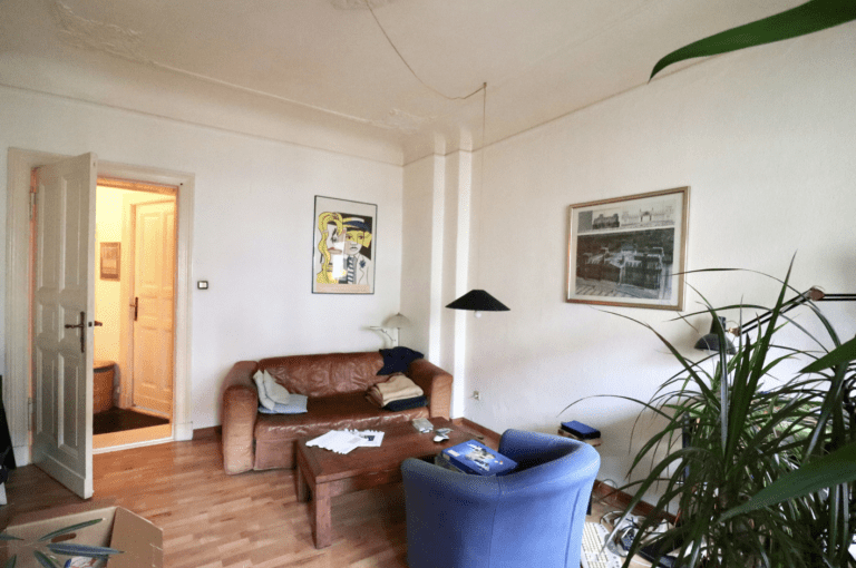 Die hohen Zimmerdecken und der historische Stuck der Zimmerdecken verleihen der Wohnung den vielgesuchten Altbaucharme. Das Wohnzimmer hat eine angenehme Größe, einen nach Süden ausgerichteten Sonnen-Balkon und wirkt großzügig, hell und freundlich.