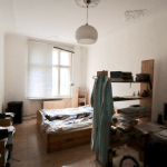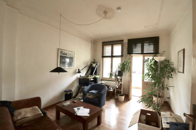 Die Fußböden der Wohnräume wurden mit Laminat ausgelegt, darunter befinden sich die altbautypischen Holzdielen, auch die Küche verfügt über eine Holzdielung. Die Wände sind mit Raufasertapete tapeziert worden. Die gesamte Wohnung verfügt über zweifach verglaste Holzfenster.