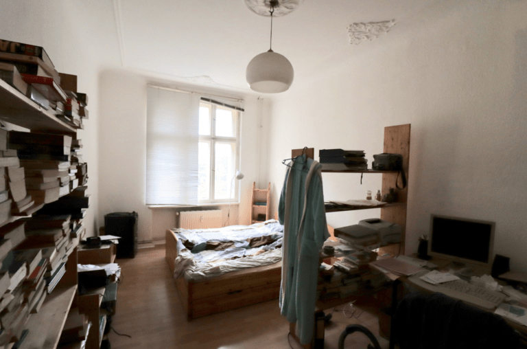 Das Schlafzimmer ist ruhig zum Hof ausgerichtet und bietet genügend Stellfläche für einen großen Kleiderschrank. Das zwischen dem Wohn- und dem Schlafzimmer innenliegende, ehemalige Bad dient aktuell als Abstellkammer. Die Küche bietet viel Platz für Arbeitsflächen, einen Essbereich und eine separate Abstellkammer. Zur Wohnung gehört zudem ein Keller.