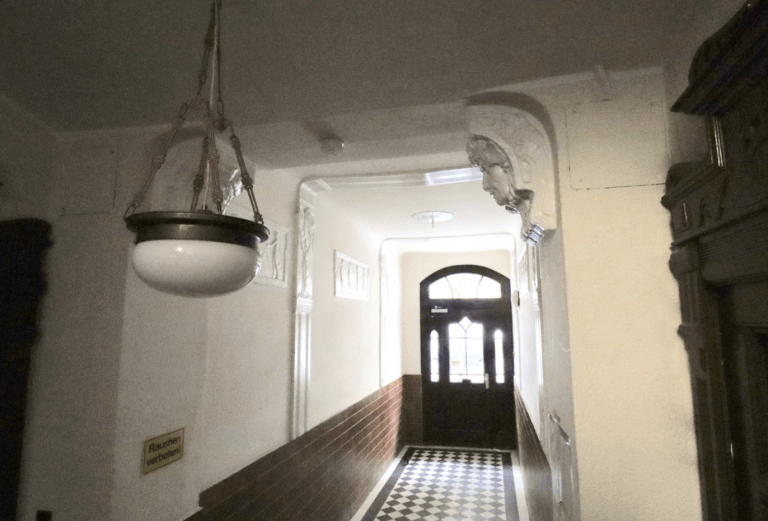 Die 2-Zimmerwohnung befindet sich im 3. Obergeschoss des Vorderhauses eines 5-stöckigen, gepflegten Mehrfamilienhauses aus dem Jahre 1905.