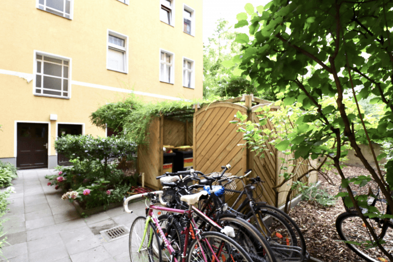 Wohnen im Grünen, mitten in der Großstadt, ist ein äußerst attraktives Angebot. Einkaufsmöglichkeiten für den täglichen Bedarf und gastronomische Einrichtungen sind in der Nähe zu erreichen. In den benachbarten Osram-Höfe bieten neben Boutiquen verschiedene Geschäfte ihre Waren an. Ebenfalls eine Auswahl an Geschäften, Warenhäusern, Cafés und Restaurants findet man in den Einkaufsstraßen Reinickendorfer Straße oder Müllerstraße.