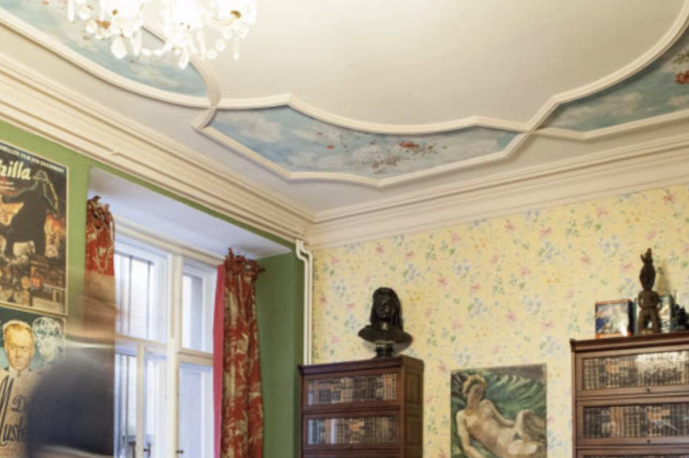 Die hohen Decken sind mit Deckenmalerei und Stuck verziert, womit sich der viel gesuchte Altbaucharme erhalten hat. Die hölzernen Kassettentüren und das Eichenparkett lassen die Räume authentisch und individuell wirken.