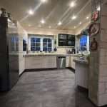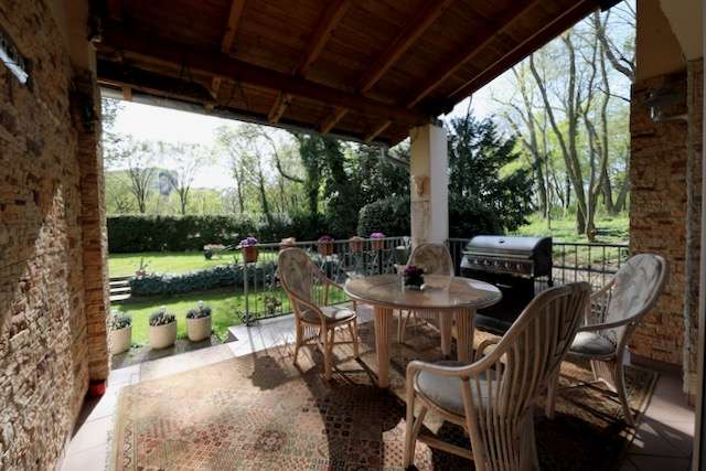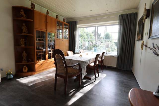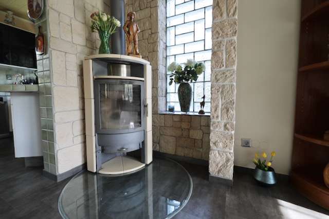 Im Erdgeschoss befinden sich ein Eingangsbereich mit genügend Platz für eine Garderobe; ein Duschbad; ein schöner Essbereich mit Kaminofen und einer offen Küche, ausgestattet mit einer großzügigen Einbauküche und viel Platz für Stauraum und ausreichend Arbeitsflächen. Die überdachte Terrasse ist vom Wohnzimmer begehbar und bietet einen weiten Blick in den großen, gepflegten Garten.