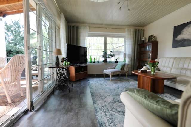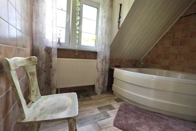 Die unteren Wohnräume sind mit einem pflegeleichten Vinyl-Boden versehen, und in der oberen Ebene wurde Laminatboden verlegt. Darunter befindet sich ein Holzdielenboden. Die Wände sind verspachtelt. Weiterhin verfügt das Haus über doppelt verglaste Kunststofffenster. Die Deckenhöhe beträgt ca. 2,60 m und vermittelt ein angenehmes Raumgefühl.