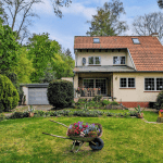 Der große Garten bietet viel Platz und ein Gartenhäuschen ist zudem vorhanden.