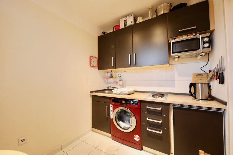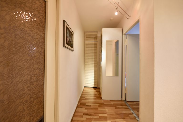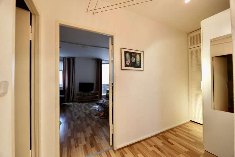 Im Flur sowie in den Wohnräumen ist ein Laminatboden verlegt. Das Badezimmer und die Küche sind hell gefliest, und die Wände sind tapeziert. Zudem befindet sich im Flur eine praktische, kleine Abstellkammer.