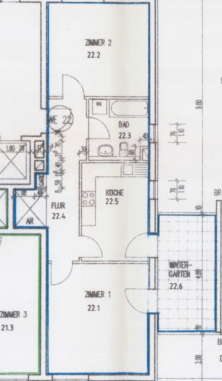 Die Wohnung ist seit dem 01.08.2000 zuverlässig vermietet. Ein neuer Eigentümer kann das Mietverhältnis mit einer Frist von 9 Monaten innerhalb der gesetzlichen Bestimmungen wegen Eigenbedarfs kündigen.