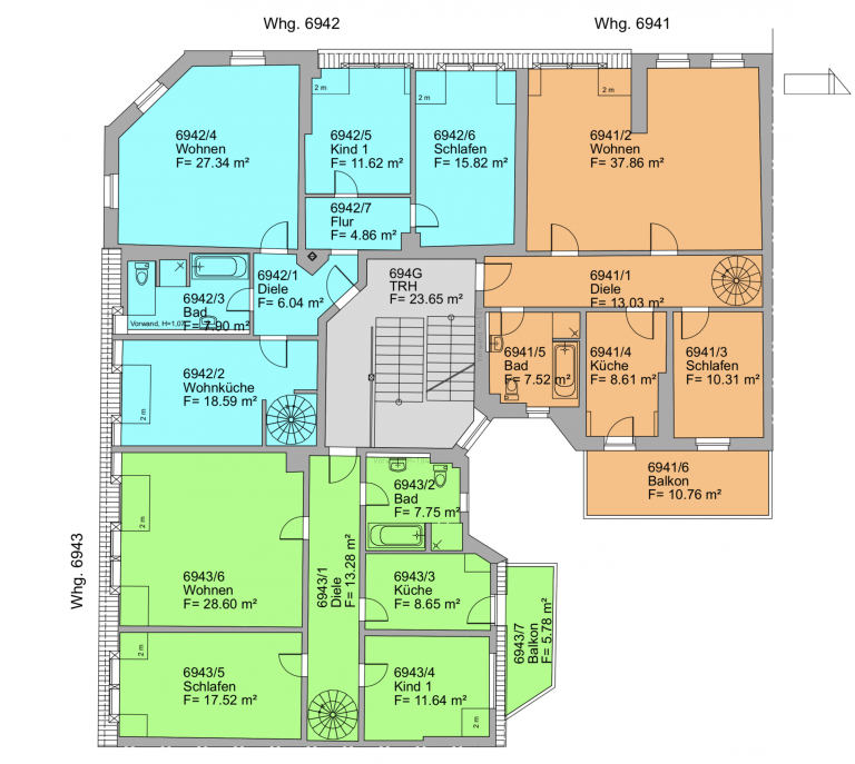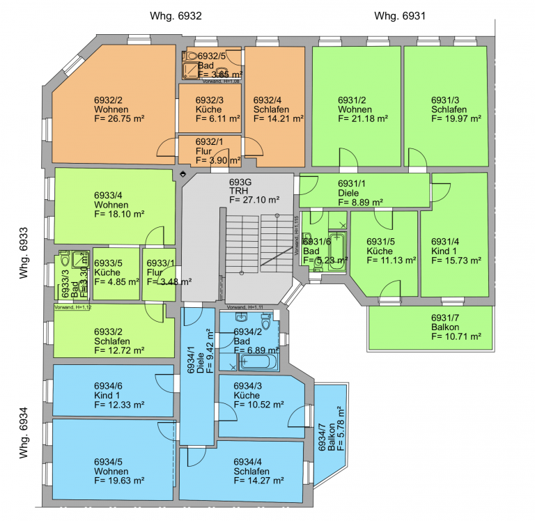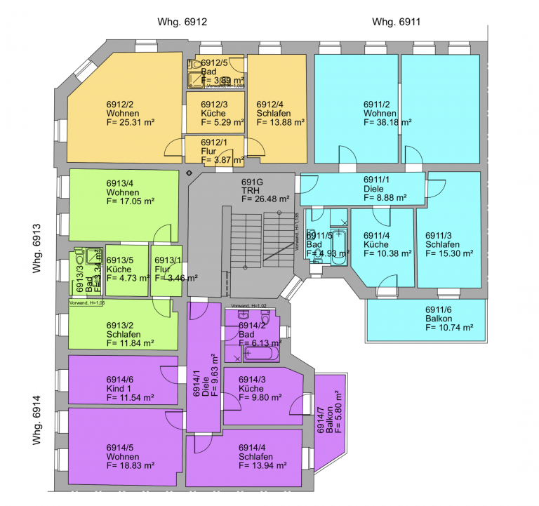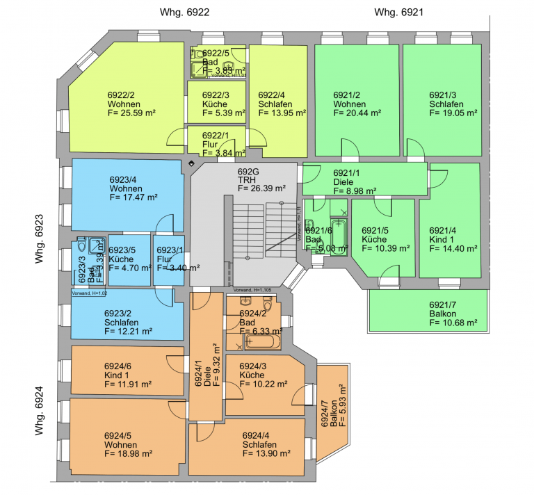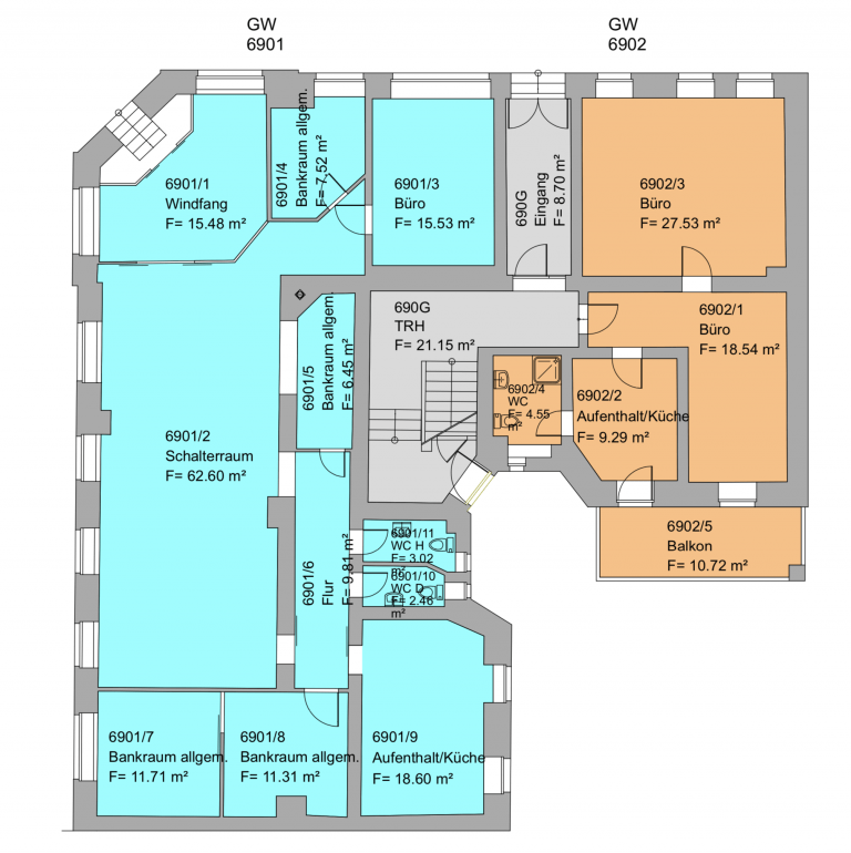 Das Gebäude verfügt über 15 Wohneinheiten sowie zwei Gewerbeeinheiten, die sich auf vier Geschosse, ein ausgebautes Dachgeschoss sowie ein Gartenhaus aufteilen.