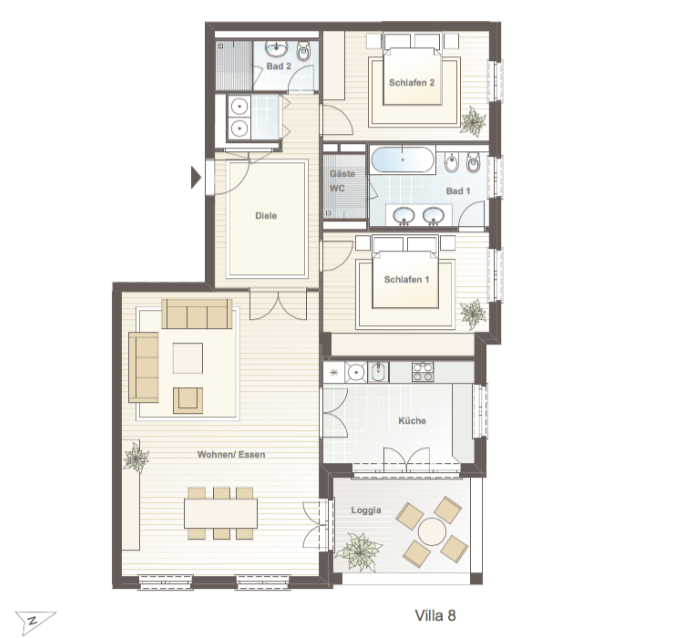 Für Stauraum sorgen platzschaffende Einbauschränke und ein Abstellraum.