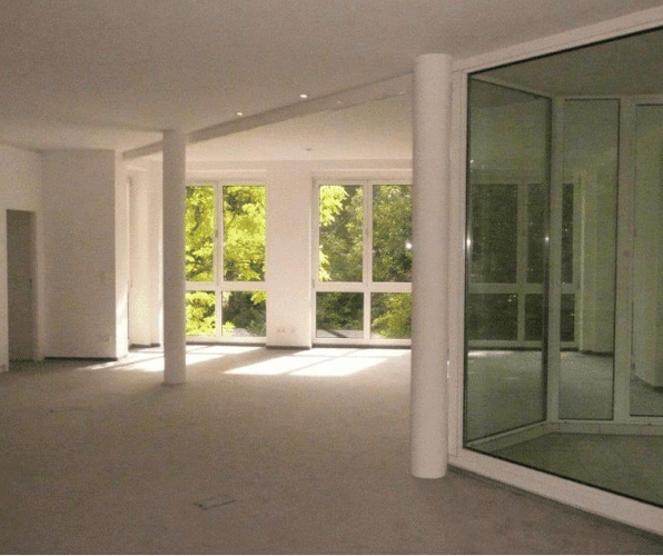 In der großen, herrschaftlichen Villa befinden sich 12 exklusive Eigentumswohnungen. Der Baukörper zeichnet sich durch seine offene Bauweise mit großen Fensterflächen aus.