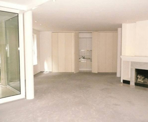 Der riesige Wohnbereich ist mit einem wunderschönen Kamin und einer offenen Küche ausgestattet. Ein großzügiger Wintergarten lädt außerdem zum Verweilen ein und versorgt die Wohnung mit einer bemerkenswerten Helligkeit. In dem Schlafzimmer ist für genügend Stauraum durch Einbauschränke vorhanden.