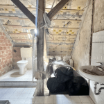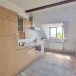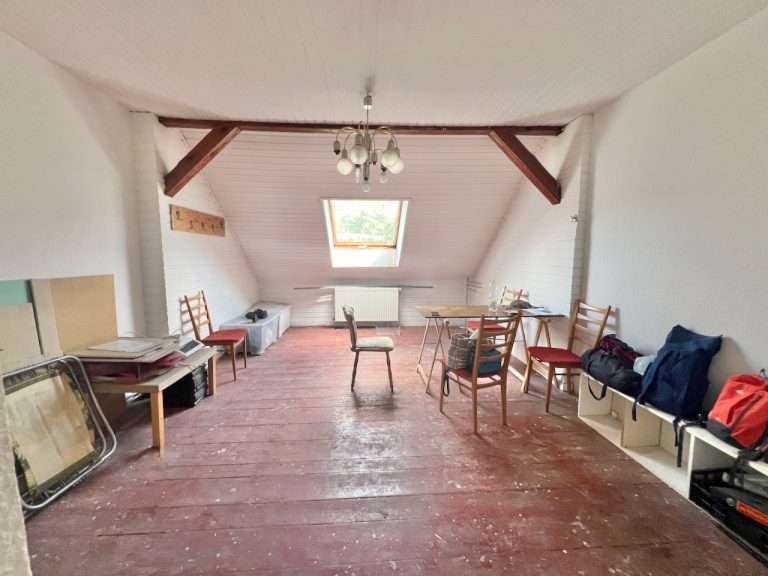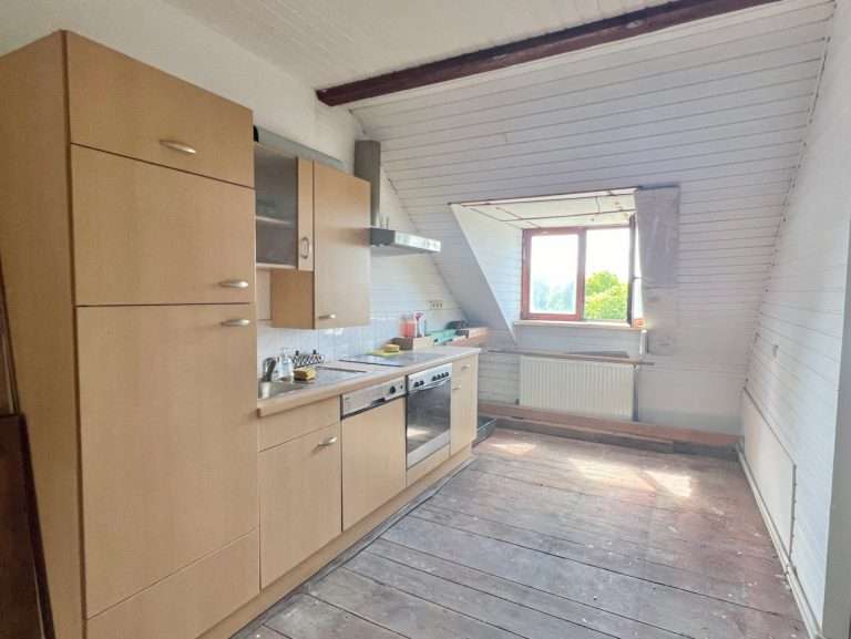 Die Wohnung beinhaltet eine Wohnfläche von ca. 65 m², die sich auf einen Flur, ein großes Badezimmer mit Dusche, einen geräumigen Küchenbereich, ein kleineres Zimmer mit direktem Zugang zum Dachgeschoss sowie ein Wohnzimmer verteilt. Die Dachgeschossebene verfügt über ca. 145 m² Grundfläche und eine Firsthöhe von ca. 3 m.