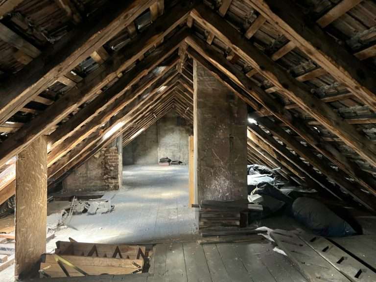 Das Mehrfamilienhaus wurde um die Jahrhundertwende erbaut. Die Wohnung ist im vierten Obergeschoss gelegen und über das Treppenhaus zu erreichen. Oberhalb der Wohnung befindet sich eine nicht ausgebaute Dachgeschossfläche, die direkt von der Wohnung aus zugänglich ist.