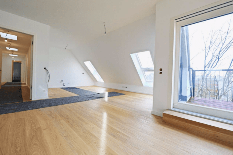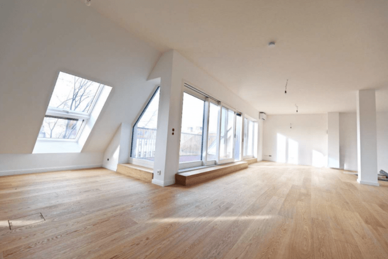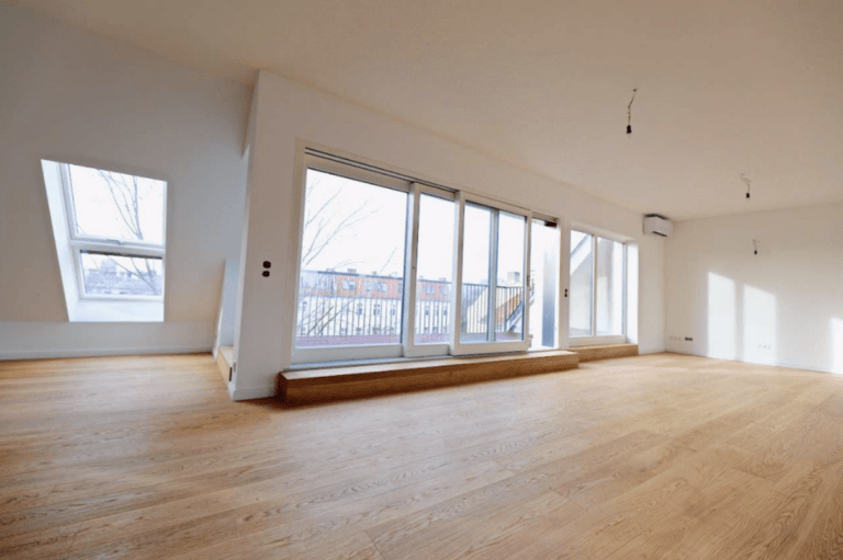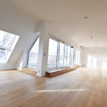 Die Wohnung erstreckt sich auf der gesamten Dachgeschossebene des Gebäudes und ist bequem mit dem Aufzug erreichbar.