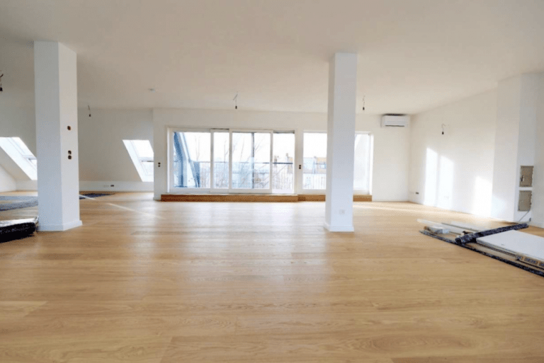Eine spektakuläre Größe von gut 100 m² loftartiger Wohnraum lässt staunen.