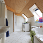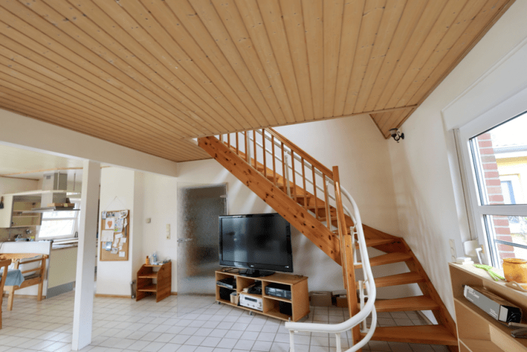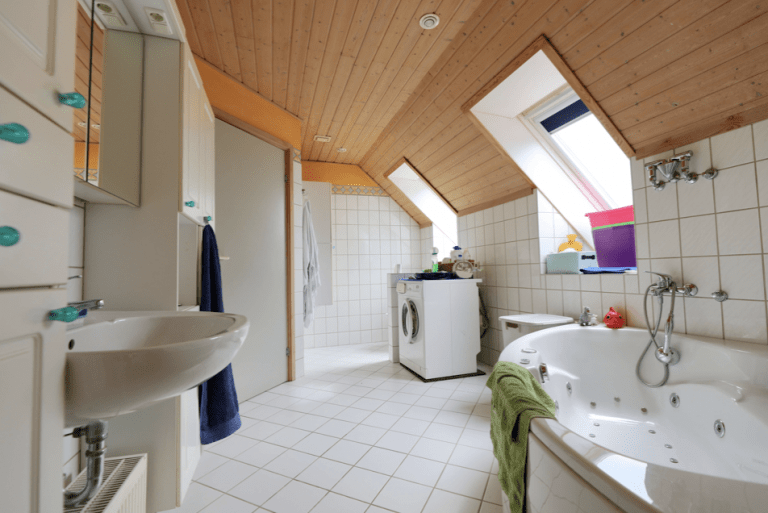 Über eine Treppe im Wohnzimmer ist das obere Geschoss zu erreichen, welches über ein Schlafzimmer, zwei Kinderzimmer sowie über ein großzügiges Badezimmer, ausgestattet mit einer Eckbadewanne mit Whirlpoolfunktion, und welches auch über einen Waschmaschinenanschluss verfügt. Ein Spitzboden sorgt für zusätzlichen Stauraum.