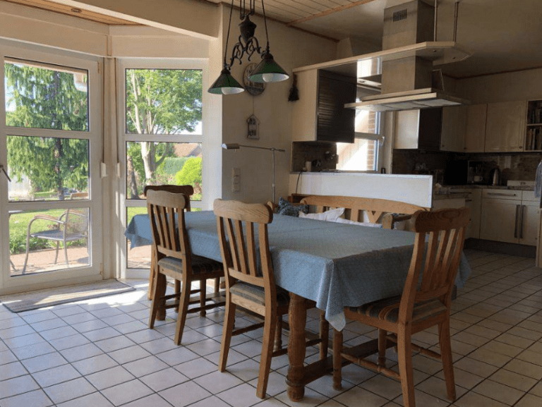Auf einer Wohnfläche von ca. 120 m² verteilen sich im barrierefreien Erdgeschoss ein Flur nebst Duschbad, eine Küche, ausgestattet mit einer Einbauküche, welche offen zum Wohnzimmer gestaltet ist, ein geräumiges Wohn-/Esszimmer mit Zugang zu der großen Terrasse und ein weiterer Raum, der vielfältig genutzt werden kann.