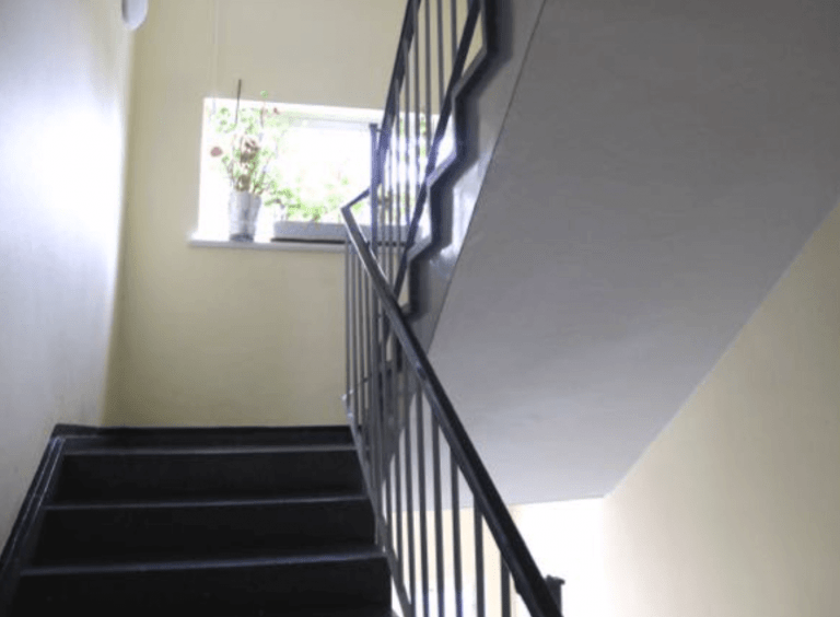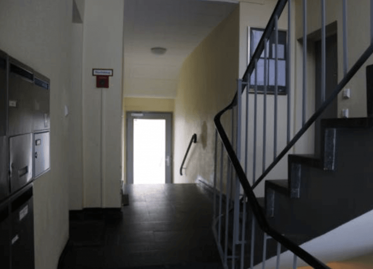 Die Einheit liegt im Vorderhaus des Wohngebäudes und ist bequem über den Fahrstuhl zu erreichen, der halbgeschossig hält.