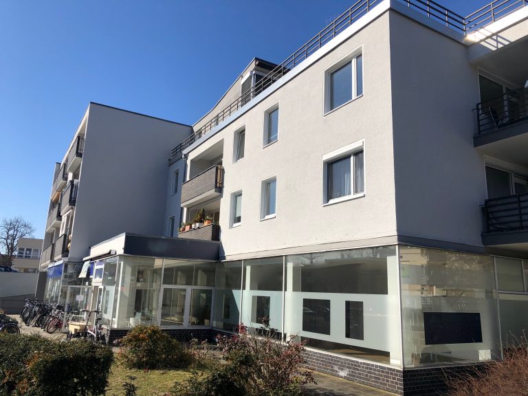 Die Gewerbefläche befindet sich im Erdgeschoss eines Wohn- und Geschäftshauses aus dem Jahr 1967, verfügt über eine Fläche von ca. 277 m², eine Schaufensterfront von insgesamt 28m und ist in zwei Bereiche, Laden 1 und Laden 2, aufgeteilt, die separat zugänglich sind.