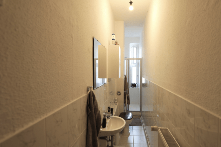 Die Wohnung verfügt in den Wohnräumen und der Küche über einen gut erhaltenen Holzdielen-Boden. Das Badezimmer ist hell gefliest.