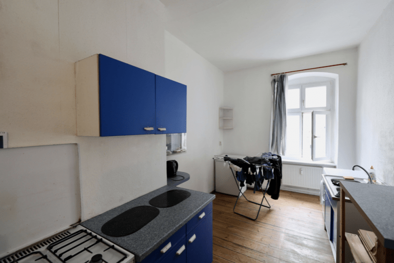 Die Küche und das Badezimmer sind bereits mit erneuerten Fenstern ausgestattet. Im Wohn-/Schlafraum sind noch die charmanten Doppelkastenfenster inklusive Messingbeschlägen vorhanden.