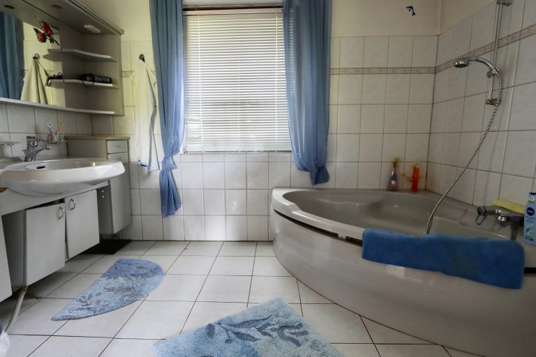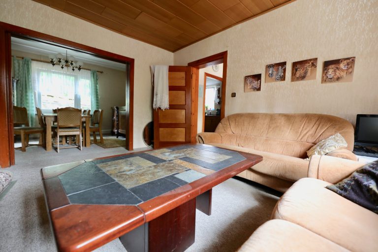 Zur Ausstattung gehören erneuerte, doppelt verglaste Kunststofenster, ausgenommen ist ein Schlafzimmer im Obergeschoss, sowie tapezierte Wände. In den Zimmern sind alte Holzdielen vorhanden, über die Auslegware oder Laminatboden verlegt worden ist. Das tagesbelichtete Wannenbad mit Anschluss für die Waschmaschine ist hell gefliest.