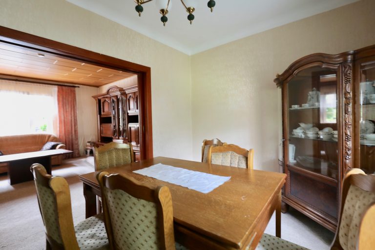 Die teilunterkellerte Doppelhaushälfe aus dem Jahr 1934 wurde auf einem ca. 917 m2 großen Grundstück erbaut und verfügt über ca. 126,54 m2 Wohnfläche, die sich auf zwei Etagen verteilt. Ein Spitzboden sorgt für zusätzlichen Stauraum. Die Fassade des Hauses ist mit einer Wärmedämmung und einem zusätzlichen Sperranstrich isoliert worden. Das Grundstück ist straßenseitig mit einem ca. 200 Jahre altem Zaun eingezäunt.