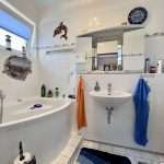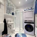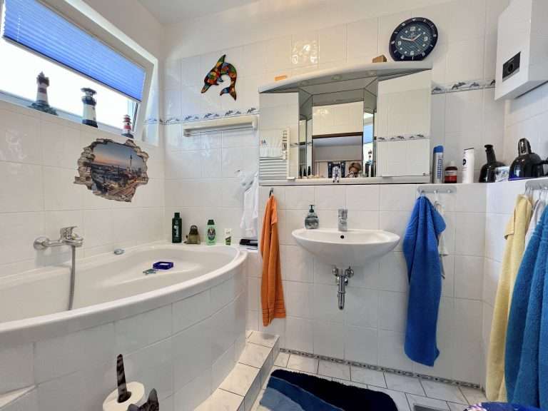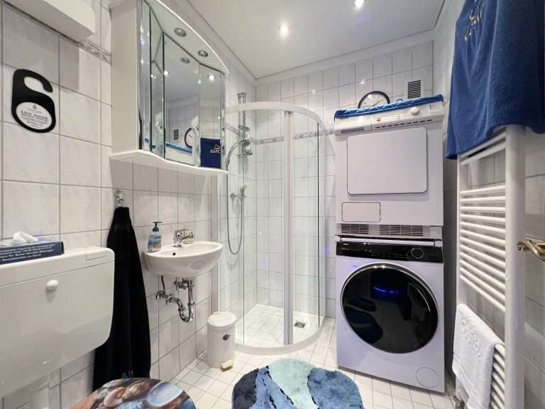 Die Bäder sind hell gefliest und mit Handtuchwärmern ausgestattet. Ein Badezimmer verfügt über eine Badewanne und das andere Badezimmer über eine ebenerdige Dusche. Hier befindet sich auch der Waschmaschinenanschluss.