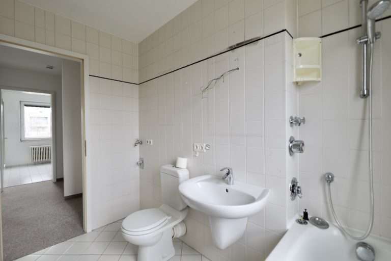 Eine Wohnfläche von ca. 77m² verteilt sich auf einen Eingangsbereich, ein Badezimmer, eine Küche, und zwei Zimmer. Die Küche bietet genügend Platz für eine Sitzecke und ist mit einer Einbauküche ausgestattet. Das tagesbelichtete Badezimmer verfügt über eine Badewanne und einen Waschmaschinenanschluss.