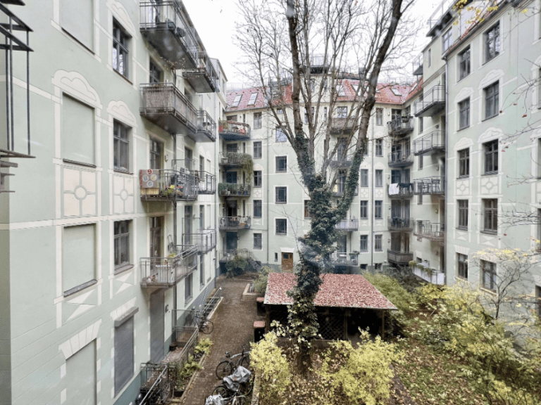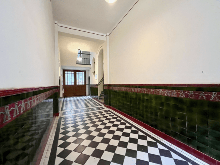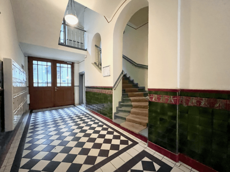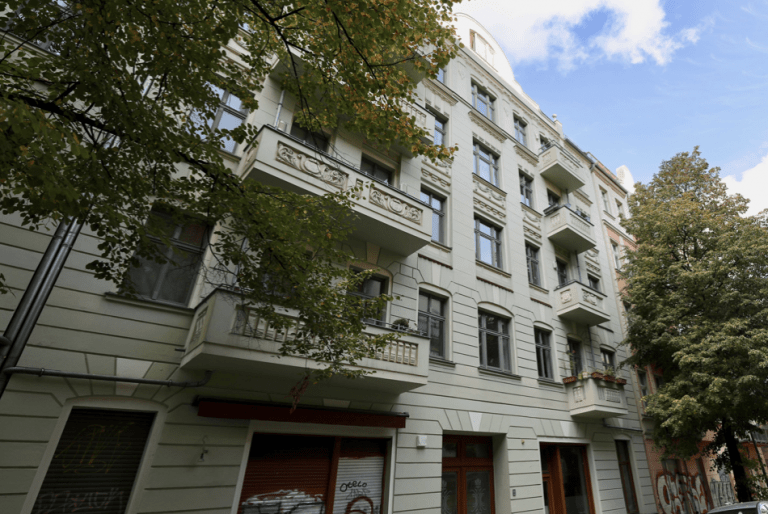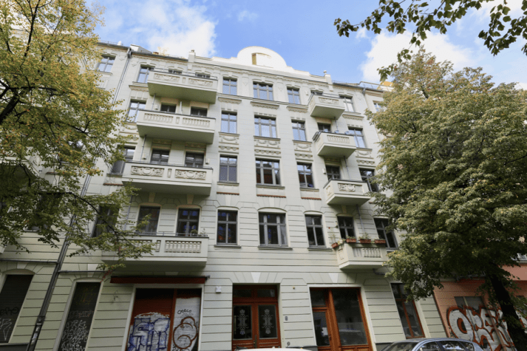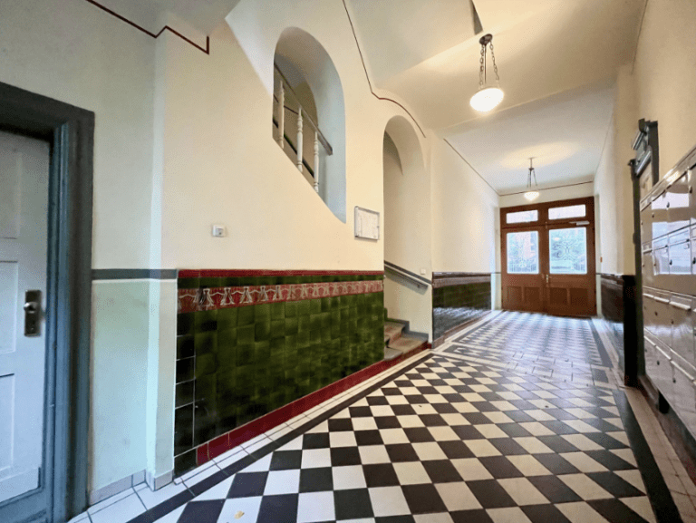 Das fünf-geschossige Gebäude wurde 1915 erbaut und ist in ein Vorderhaus, einen Seitenflügel und ein Hinterhaus aufgeteilt. Die Maisonette-Wohnung befindet sich im zweiten und dritten Obergeschoss des Seitenflügels und verfügt insgesamt über eine Wohnfläche von ca. 96 m².