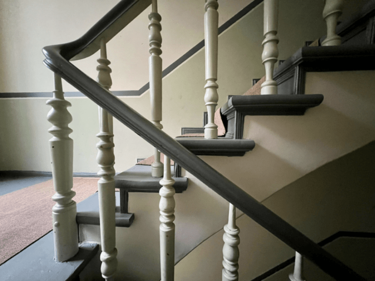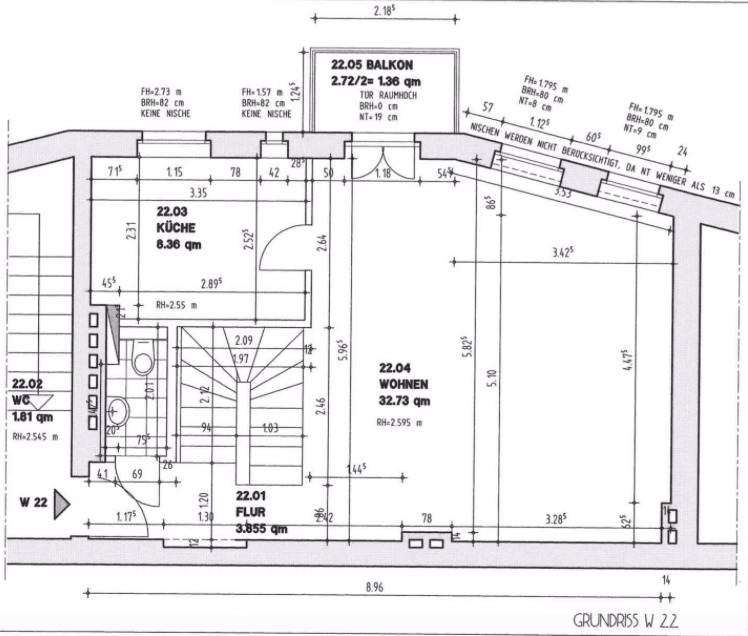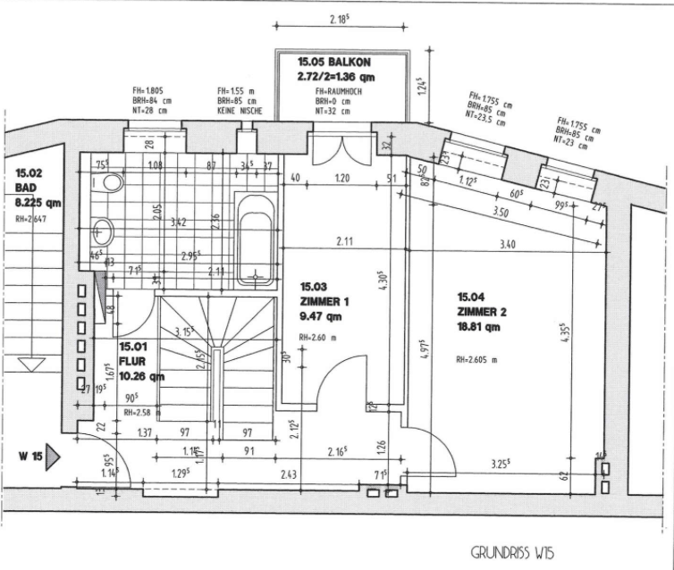 Im oberen Bereich befinden sich das Wohnzimmer mit Zugang zum zweiten Balkon und die Küche sowie ein Gäste-WC. Beide Balkone sind ruhig zur Hofseite gelegen. Die beiden Ebenen sind mit einer schönen Treppe miteinander verbunden, sind aber auch vom Treppenhaus jeweils separat zugänglich.