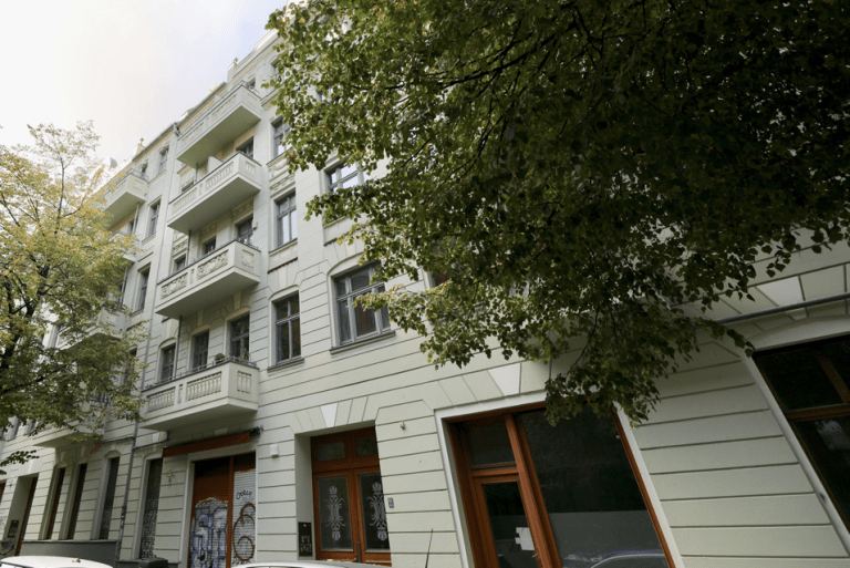 Das Gebäude liegt in einer ruhigen Seitenstraße im äußerst beliebten Winsviertel. Hier haben sich einige Berliner und Neu-Berliner von dem Zauber des Viertels begeistern lassen und genießen das Kiezleben, umgeben von einigen Parkanlagen, die zum Verweilen oder zu sportlichen Aktivitäten einladen.