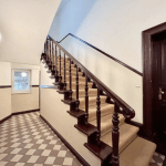 Der Fußboden ist mit Stäbchen-Parkett versehen. Die Wände sind tapeziert, und die Wohnung verfügt über zweifach verglaste, bodentiefe Holz-Fenster mit französischen Balkonen.